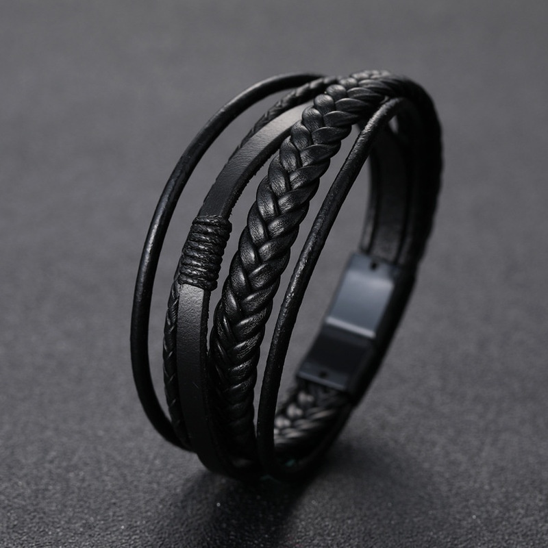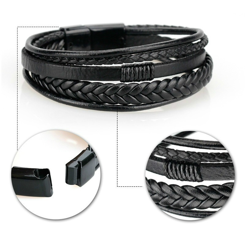 1pc Stylish Men's Braided Faux Leather Bracelet with Sleek Metal Buckle - Adjustable, Hand-Woven Multi-Layer Design for a Bold Look
