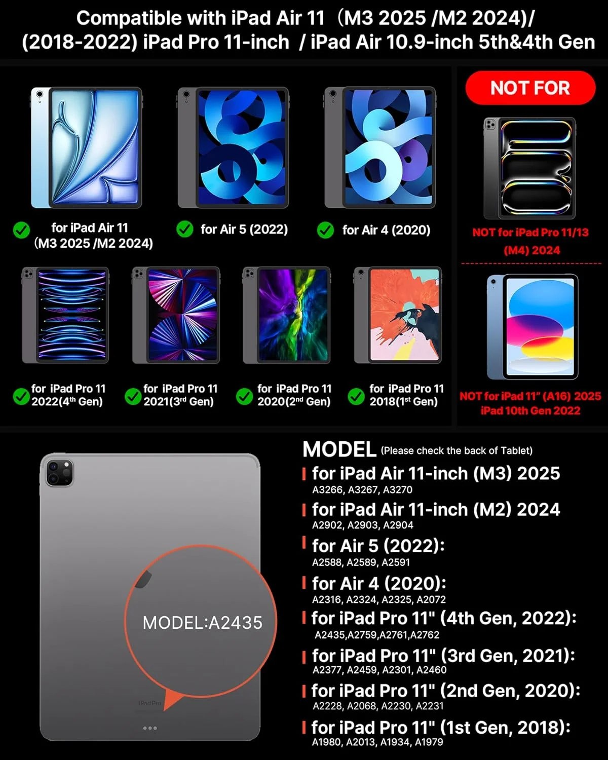 compatible with iPad Pro 11-inch (4th/3rd/2nd/1st gen) & iPad Air 10.9 “(5th/4th gen), iPad Air 11‘’ 2024 (M2),ipad Air 11'' 2025(M3)