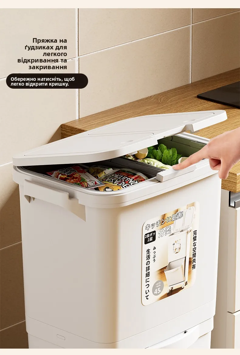 Kitchen Tra Can Large Capaci Double Layer Pr pe with Cover Wet And Dry Separation Mobile No Bending Waste Bin