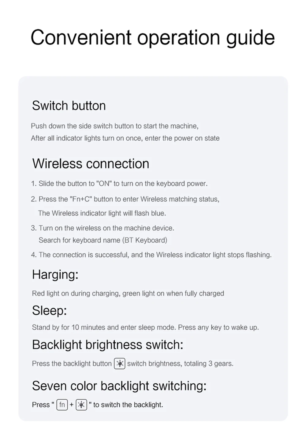 Note 3:After Open the Power, Please Click "Fn" and "C" 【Fn+C】Button Together to Open the Keyboard's Bluetooth. It is Very Important.