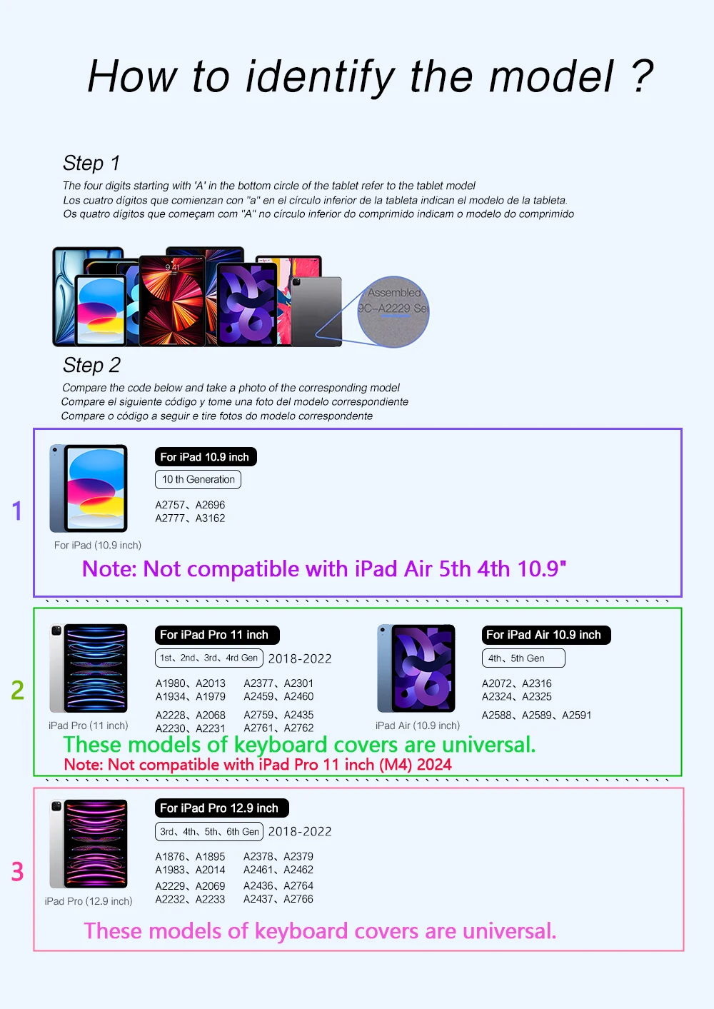 Note: The camera hole of the For iPad Air4/5 and iPad Pro 11 12.9 inch 2018 has been upgraded to a universal square hole.