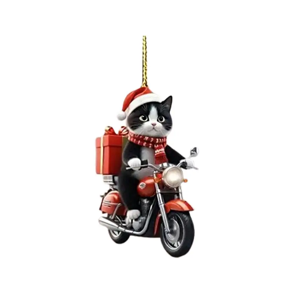 Motorcycle Cat Acrylic Hanging Decoration Christmas Tree Car 2D Flat Riding Kitten Hanging Ornament Cartoon Pendant For Christma